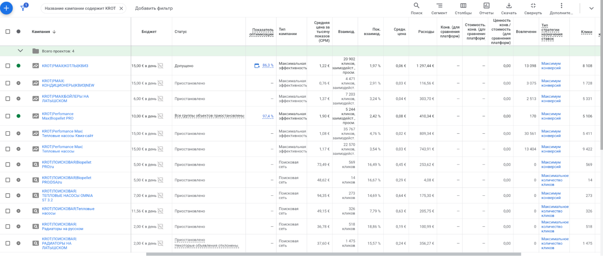 Запуск поисковых рекламных кампаний, запуск кампаний Performace Max