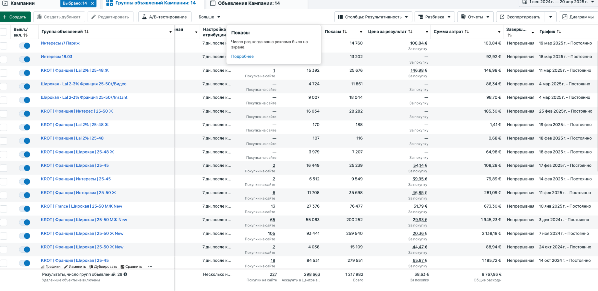 🔴 Запущены рекламные кампании на каталог по разным аудиториям.