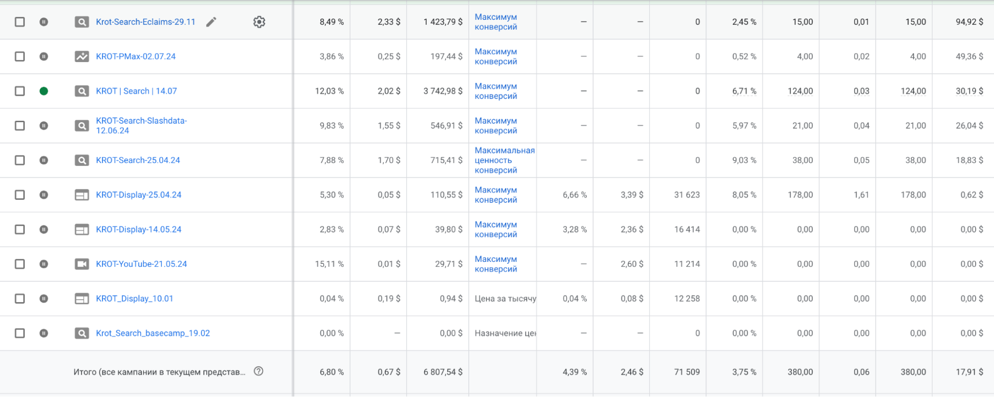 Оптимізації: Чистка пошукових запитів, додавання мінус-слів на рівні кампанії або облікового аккаунту, збір конверсійних ключових слів, видалення нерелевантних місць розміщень, перехід на автоматичні стратегії на позначення ставок під ROAS.
