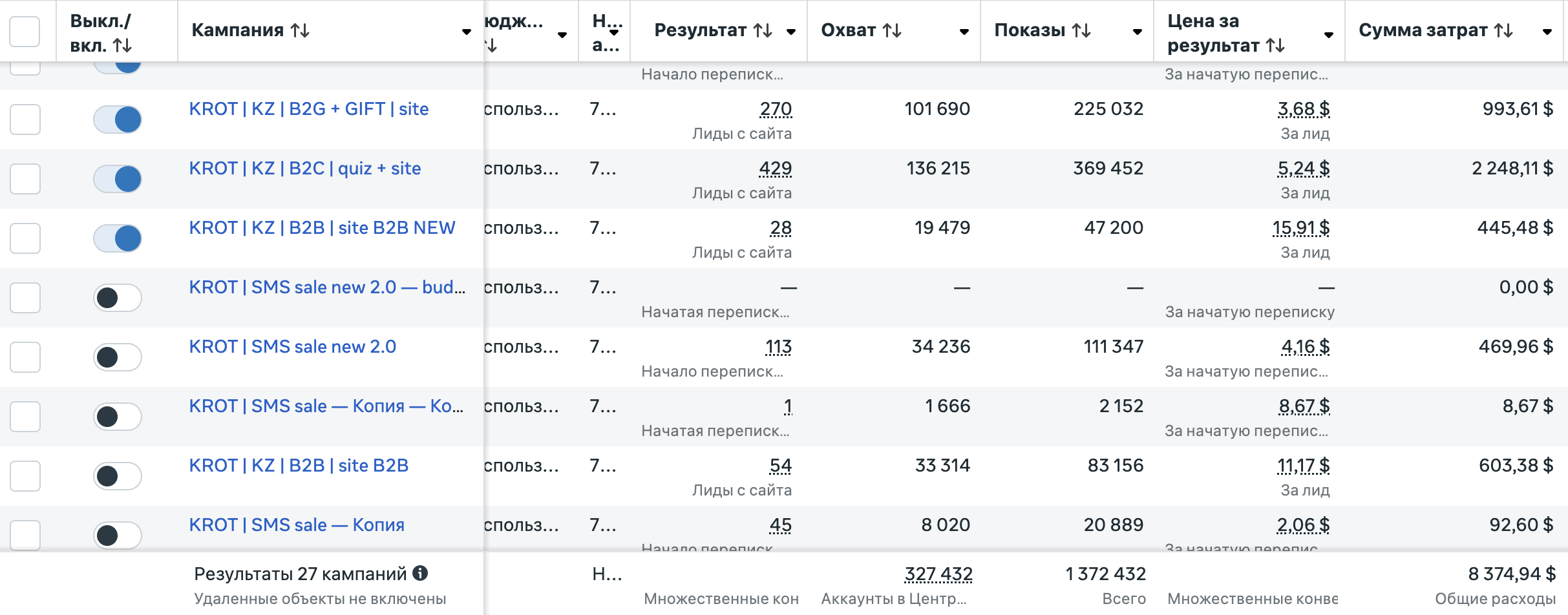 🔴 Запущены кампании на лидогенерацию, трафик, переписку.