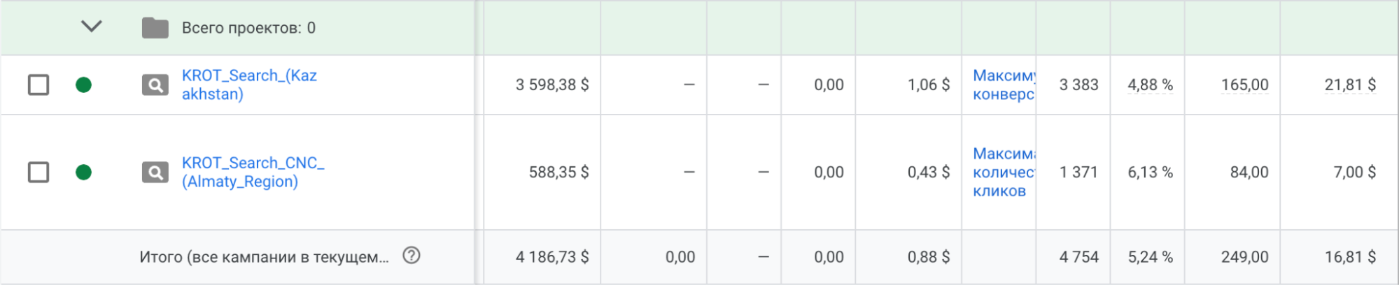 Оптимізації: Чистка пошукових запитів, додавання мінус-слів на рівні кампанії або облікового аккаунту, збір конверсійних ключових слів, перехід на автоматичні стратегії на позначення ставок під ROAS