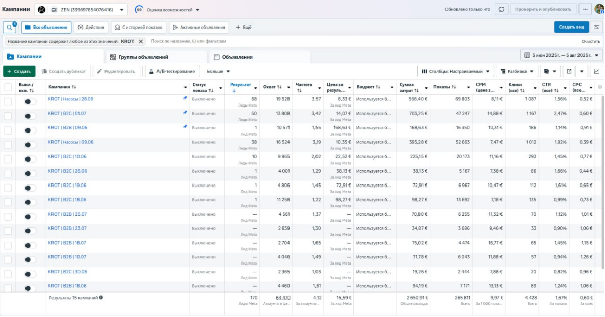 🔴 Запущены и оптимизированы кампании PMax на две аудитории по солнечным станциям и тепловым насосам (ключевые слова и аудитория конкурентов) для получения лидов;